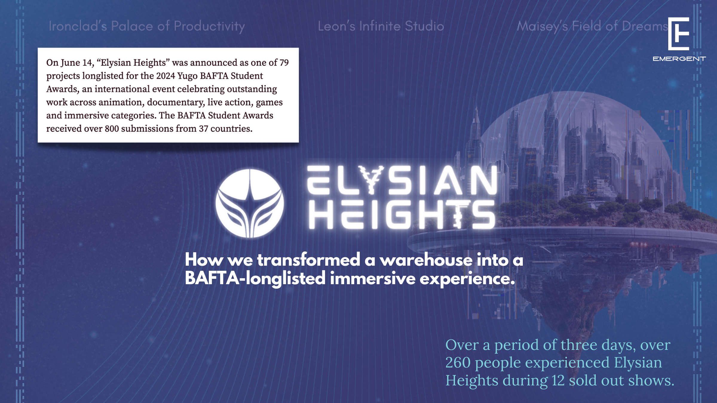 Emergent’s founders directed and led project management, writing, and technical development for Elysian Heights.