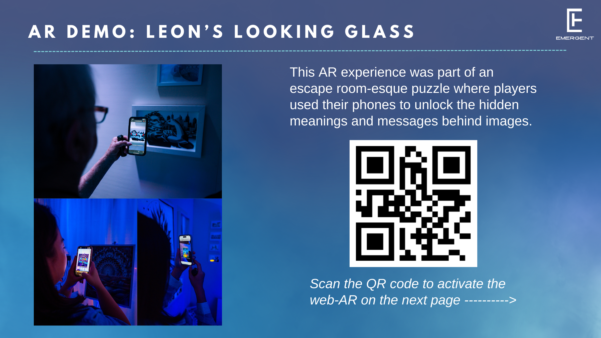 Elysian Heights was a mixed reality immersive experience that combined live theatre, escape room puzzle mechanics and immersive technology to produce a one-of-a-kind showcase. The experience spanned 12 sold out shows and attracted 270 attendees over three days.
